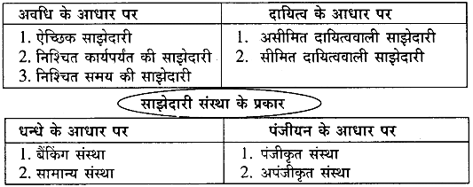 साझेदारी के विविध प्रकारों को संक्षेप में समझाइए ।