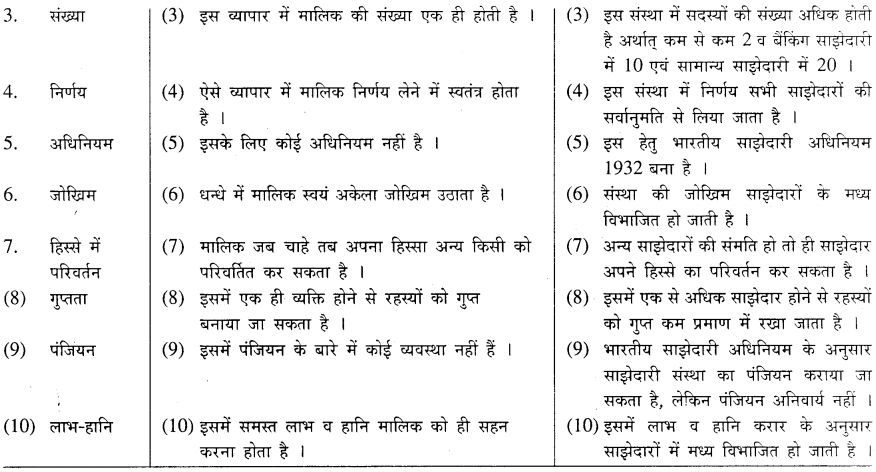 पूँजी और कार्यशक्ति की मर्यादा के कारण, अमर्यादित जिम्मेदारी के कारण तथा अल्प और अस्थिर आयु-मर्यादा के कारण धंधा अच्छी तरह चलने के बावजूद विकास और विस्तार की अनुकूलता नहीं रहती । इससे इस प्रकार के धंधे का कद छोटा और मध्यम . रहता है । बड़े पैमाने पर धंधे के लिये इस प्रकार की संस्था का स्वरूप अनुकूल नहीं है ।