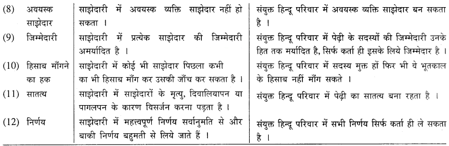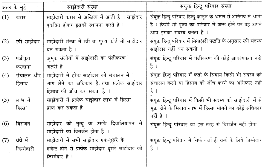 साझेदारी संस्था और संयुक्त हिन्दू परिवार संस्था :