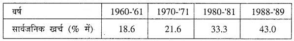 5. सन् 1960-61 से 1988-89 तक भारत के सार्वजनिक खर्च में उत्तरोत्तर वृद्धि होती रही है ।