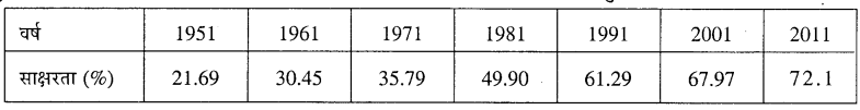 2. यह साक्षरता का प्रमाण बढ़कर 1961 में 30.45% हो गया अर्थात् 1951-61 के दशक में मात्र 8.76% की वृद्धि हुई