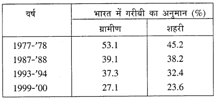 4. 1987-’88 से 1993-94 के 6 वर्षों में ग्रामीण गरीबी में 1.8% घटकर 37.3% हुई तथा शहरी गरीबी में 5.8% घटकर 32.4% गरीबी का प्रमाण रहा ।