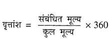 2. वृत्तांश आकृति में जानकारी को दर्शाने के लिए अंश ज्ञात करने के लिए उपर गणना दर्शायी गयी है ।