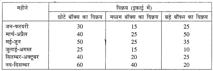 8. सितम्बर-अक्टूबर महीनों में बॉक्सों का विक्रय क्रमश: 40, 20 और 25 है ।