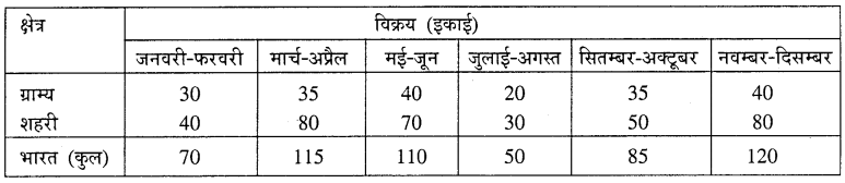 5. मार्च-अप्रैल के महीने में ग्रामीण-शहरी विस्तारों में चॉकलेट के बॉक्सो का विक्रय क्रमश: 35 और 80 है ।