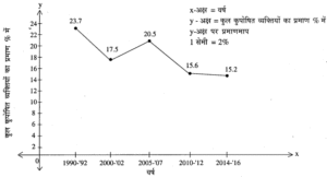 - x-अक्ष पर वर्ष और y-अक्ष पर गरीबी प्रतिशत में दर्शायी गयी है ।