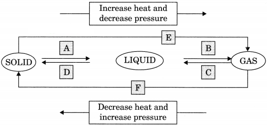 Name A, B, C, D, E and F in the following diagram showing change in its state.